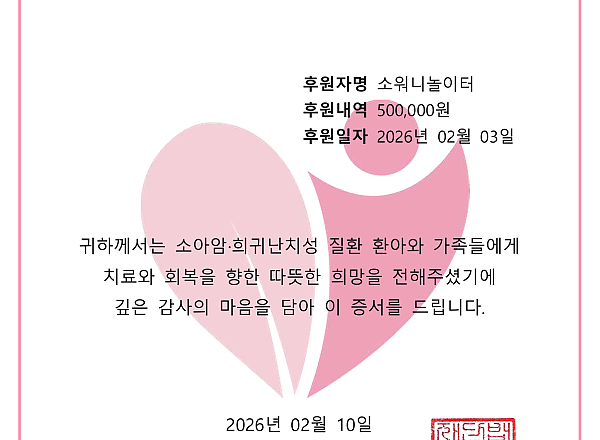 26년 1월 한국소아암재단 후원 증서
