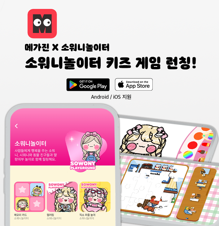 키즈 모바일 게임 소워니놀이터 2025-09-05 소워니놀이터 0 310 09.05 12:20 메가진 X 소워니놀이터ㅣ키즈 게임 런칭 / 퍼즐 · 컬러링 · 메모리 카드ㅣ2025.09
